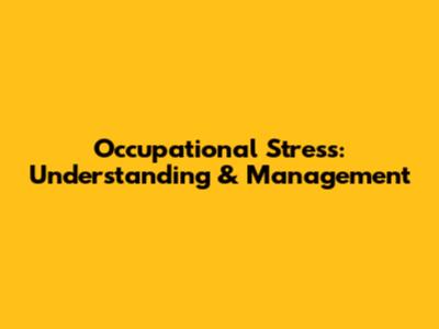 Occupational Stress: Understanding & Management