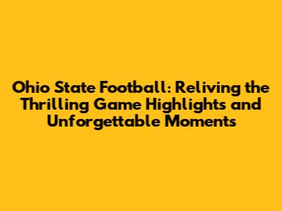 Ohio State Football: Top Game Highlights & Moments