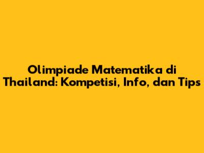 Olimpiade Matematika Thailand: Kompetisi, Info, Dan Tips