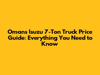 Oman's Isuzu 7-Ton Truck Price Guide: Everything You Need To Know