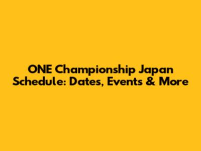ONE Championship Japan: Dates, Events & More