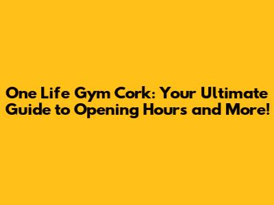 One Life Gym Cork: Opening Hours & More!