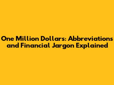 One Million Dollars: Abbreviations And Financial Jargon Explained