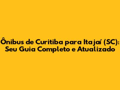 Ônibus De Curitiba Para Itajaí (SC): Guia Completo E Atualizado