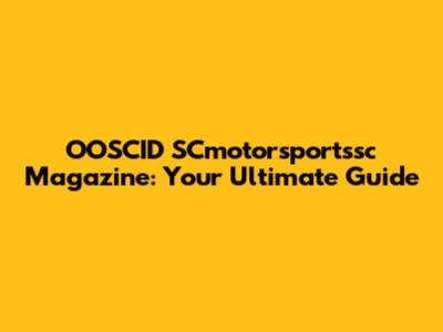 OOSCID SCmotorsportssc Magazine: Your Ultimate Guide
