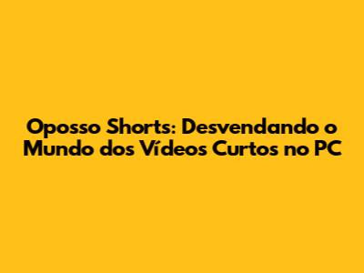 Oposso Shorts: Como Assistir No PC Sem Complicações