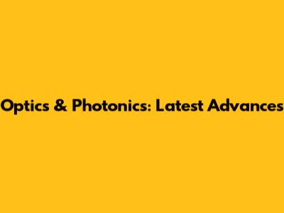 Optics & Photonics: Latest Advances