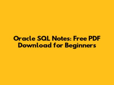 Oracle SQL Notes: Free PDF Download For Beginners