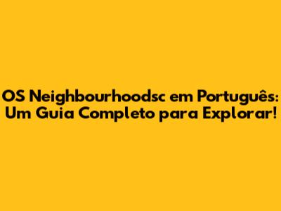 Neste artigo, vamos desmistificar tudo sobre o OS Neighbourhoodsc em português, desde o que é, como usar, até dicas incríveis para você aproveitar ao máximo.