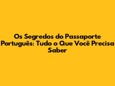 Os Segredos Do Passaporte Português: Tudo O Que Você Precisa Saber
