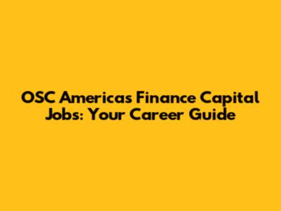 OSC Americas Finance Capital Jobs: Your Career Guide
