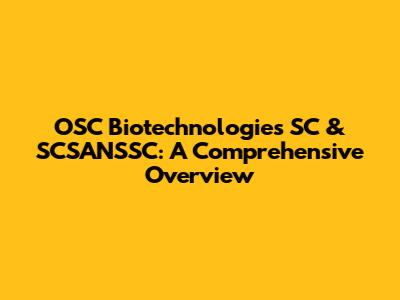 OSC Biotechnologies SC & SCSANSSC: A Comprehensive Overview