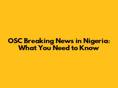 OSC Breaking News In Nigeria: What You Need To Know