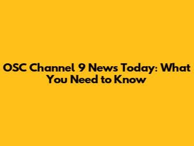 OSC Channel 9 News Today: Your Go-To Source