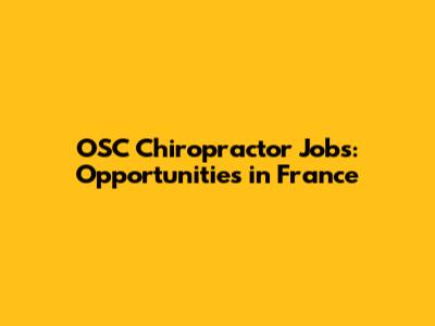 OSC Chiropractor Jobs: Opportunities In France