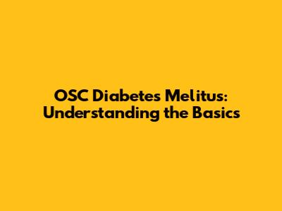 OSC Diabetes Melitus: Understanding The Basics
