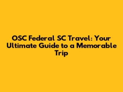 OSC Federal SC Travel: Your Ultimate Guide
