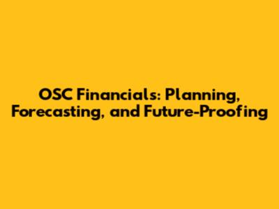 OSC Financials: Planning, Forecasting, And Future-Proofing