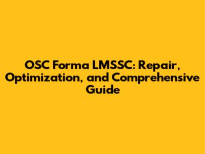 OSC Forma LMSSC: Repair, Optimization, And Comprehensive Guide