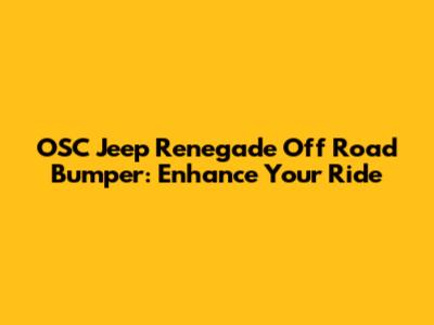 Are you looking to transform your Jeep Renegade into a true off-road warrior? Then you've come to the right place! Let's dive deep into the world of OSC Jeep Renegade off-road bumpers, exploring why they're a game-changer for your adventurous spirit. These bumpers aren't just about looks; they're about adding serious protection, functionality, and style to your beloved Jeep. We'll cover everything from the benefits of upgrading to an off-road bumper, what to look for when choosing one, and how OSC bumpers stand out from the crowd. Whether you're a seasoned off-roader or just starting to explore the trails, understanding the importance of a quality bumper is crucial. So buckle up, because we're about to embark on a journey that will equip you with all the knowledge you need to make the best decision for your Renegade.