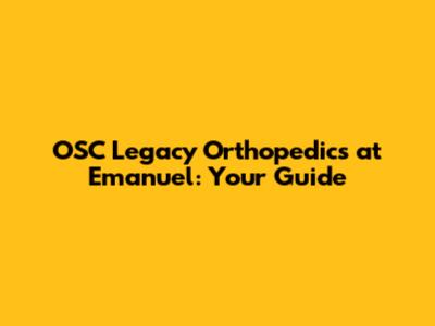 OSC Legacy Orthopedics At Emanuel: Your Guide