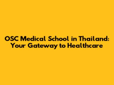 OSC Medical School In Thailand: Your Gateway To Healthcare