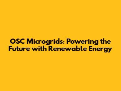 OSC Microgrids: Powering The Future With Renewable Energy