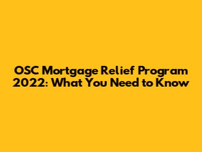 OSC Mortgage Relief Program 2022: What You Need To Know