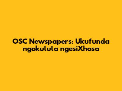 OSC Newspapers ngumthombo omkhulu weendaba ezikwi-intanethi kwabo bafuna ukufunda isiXhosa okanye ukwandisa ulwazi lwabo ngesiNgesi ngokusebenzisa ulwimi lwesiXhosa. Ukuba ulandela iingcebiso esizixoxileyo, uza kuba nethuba elihle lokufunda ngempumelelo. Ukufunda iindaba ngesiXhosa kunokukunceda ukuba wandise isigama sakho, uphucule ulwazi lwakho lwegrama, kwaye uqonde ulwazi olubalulekileyo. Ngoko ke, yiya kwi-OSC Newspapers namhlanje uze uqale ukufunda!