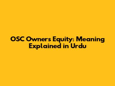 OSC Owner's Equity: Meaning Explained In Urdu