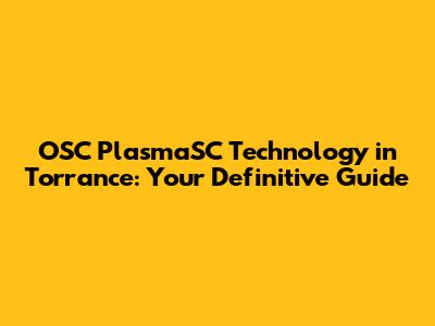 OSC PlasmaSC Technology: Your Guide To Torrance Solutions