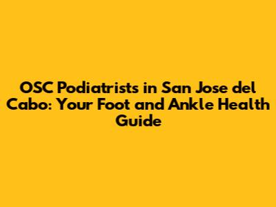 OSC Podiatrists in San Jose del Cabo are your go-to experts for all things foot and ankle. They bring a wealth of knowledge and experience to the table, helping you stay active and pain-free. They are dedicated to improving the health and well-being of their patients through personalized care and advanced treatments. No matter what your foot and ankle needs, OSC Podiatrists have got you covered.