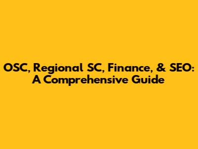 OSC, Regional SC, Finance, & SEO: A Comprehensive Guide