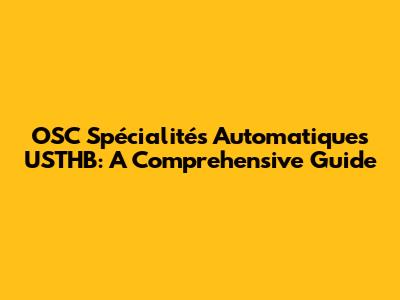 OSC Spécialités Automatiques USTHB: A Comprehensive Guide