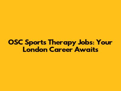 OSC Sports Therapy Jobs: Your London Career Awaits