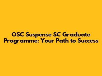 OSC Suspense SC Graduate Programme: Your Path To Success