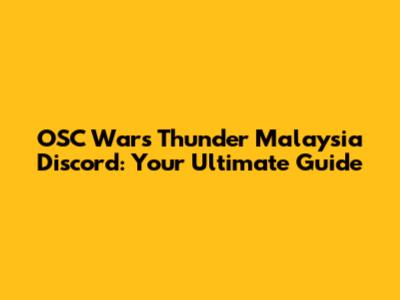 OSC Wars Thunder Malaysia Discord: Your Ultimate Guide