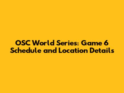 OSC World Series: Game 6 Schedule And Location Details