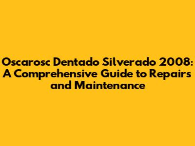 Oscarosc Dentado Silverado 2008: Common Issues & Fixes