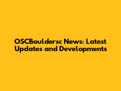 OSCBouldersc News: Latest Updates And Developments