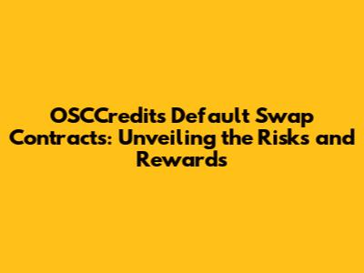 OSCCredits Default Swap Contracts: Unveiling The Risks And Rewards