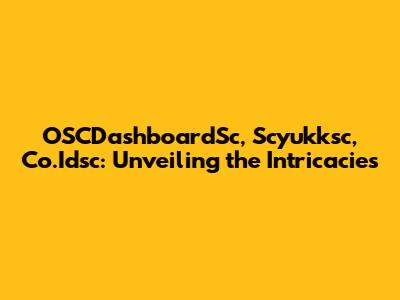 OSCDashboardSc, Scyukksc, And Co.Idsc: A Deep Dive