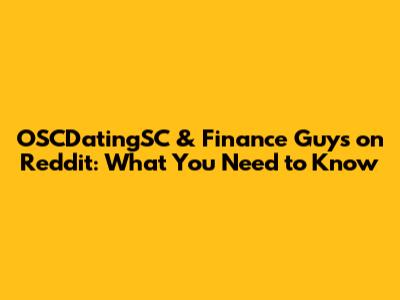 OSCDatingSC & Finance Guys On Reddit: What You Need To Know
