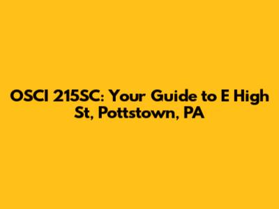 OSCI 215SC: Your Guide To E High St, Pottstown, PA