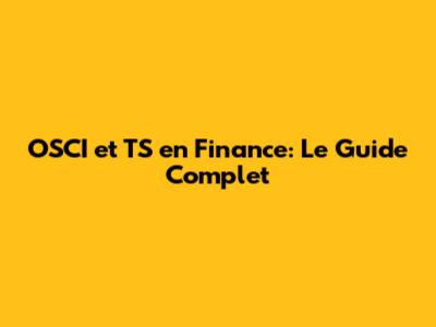 OSCI Et TS En Finance: Le Guide Complet