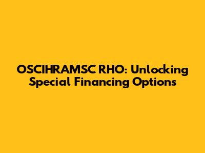 OSCIHRAMSC RHO: Unlocking Special Financing Options