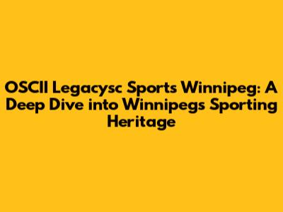 Winnipeg, a city known for its vibrant culture and resilient spirit, boasts a rich sporting history deeply intertwined with the OSCII Legacysc Sports organization. This article explores the profound impact of OSCII Legacysc Sports on Winnipeg's sporting landscape, examining its contributions to athlete development, community engagement, and the overall promotion of sports within the city. Get ready to explore the heart of Winnipeg's sporting legacy, guys!