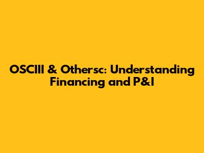 OSCIII & Othersc: Understanding Financing And P&I