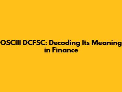 OSCIII DCFSC: Decoding Its Meaning In Finance