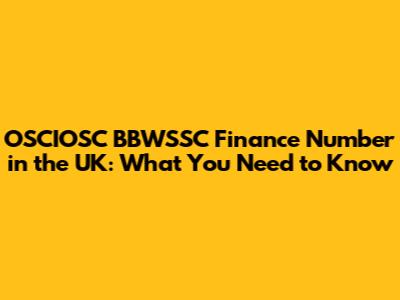 OSCIOSC BBWSSC Finance Number In The UK: What You Need To Know